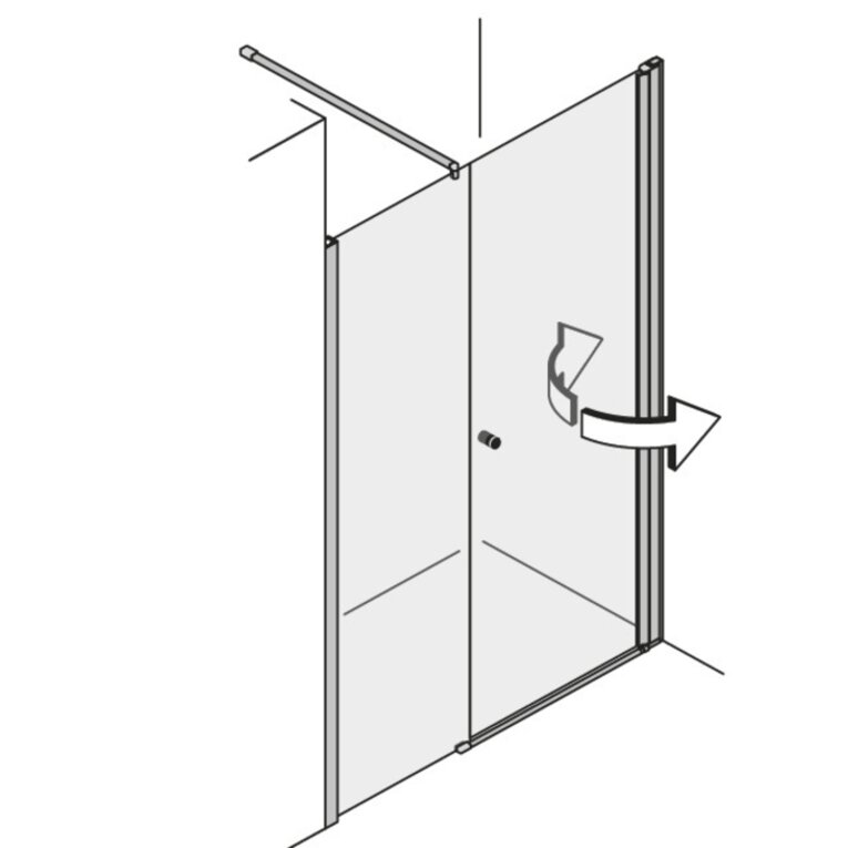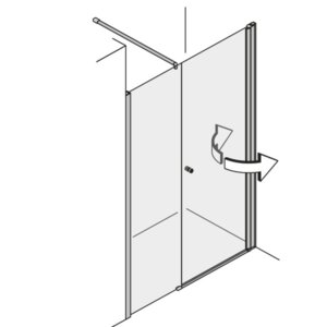 Modelle mit der Tür an einem Glas-Fixteil erlauben die Öffnung der Türe um 180° nach innen und 180° nach außen. Das ist einzigartig am Markt!  Modelle mit der Tür direkt an der Wand haben einen Öffnungswinkel von 90° nach innen und außen.
