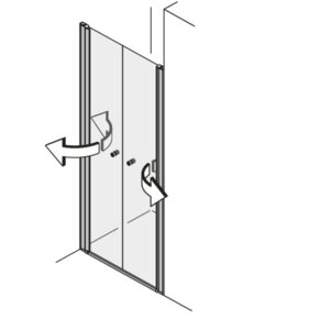Modelle mit der Tür an einem Glas-Fixteil erlauben die Öffnung der Türe um 180° nach innen und 180° nach außen. Das ist einzigartig am Markt! Modelle mit der Tür direkt an der Wand haben einen Öffnungswinkel von 90° nach innen und außen.