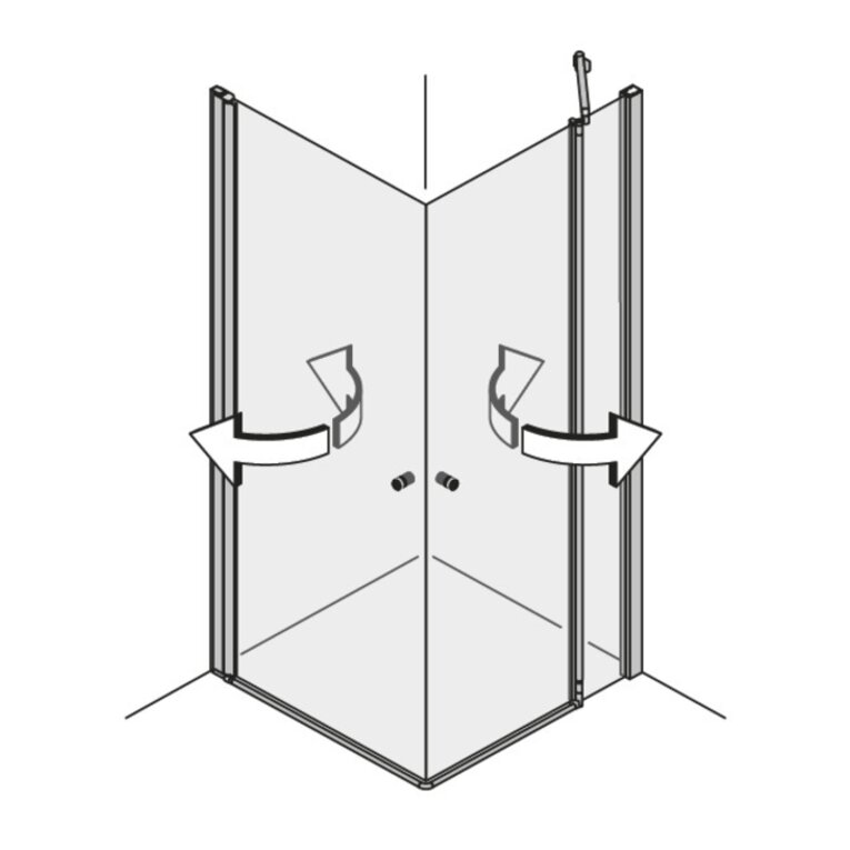 Modelle mit der Tür an einem Glas-Fixteil erlauben die Öffnung der Türe um 180° nach innen und 180° nach außen. Das ist einzigartig am Markt! Modelle mit der Tür direkt an der Wand haben einen Öffnungswinkel von 90° nach innen und außen.