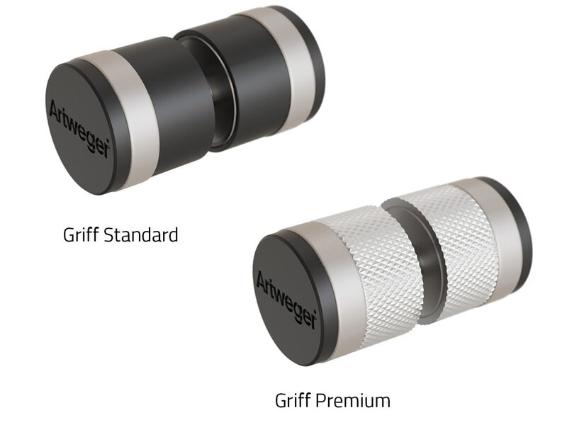 2 Griffvarianten stehen zur Verfügung. Die Zierteile des Griffes spiegeln die Farbe der Profile wider.