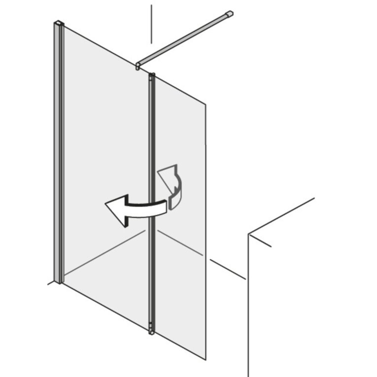 Modelle mit der Tür an einem Glas-Fixteil erlauben die Öffnung der Türe um 180° nach innen und 180° nach außen. Das ist einzigartig am Markt!  Modelle mit der Tür direkt an der Wand haben einen Öffnungswinkel von 90° nach innen und außen.