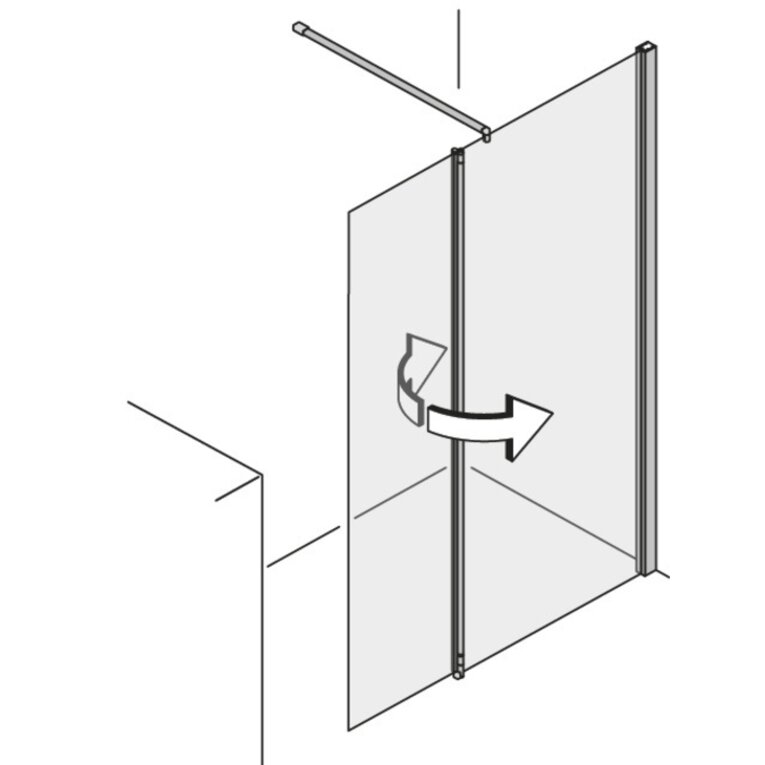 Modelle mit der Tür an einem Glas-Fixteil erlauben die Öffnung der Türe um 180° nach innen und 180° nach außen. Das ist einzigartig am Markt! Modelle mit der Tür direkt an der Wand haben einen Öffnungswinkel von 90° nach innen und außen.