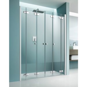 Ein Hebe-Senk Mechanismus im Pendeltür-Scharnier hebt die Duschtür beim Öffnen etwas auf und senkt sie wieder beim Schließen. Dadurcg streift die Tür beim Bewegen nicht am Boden und ist dennoch im geschlossenen Zustand möglichst dicht.