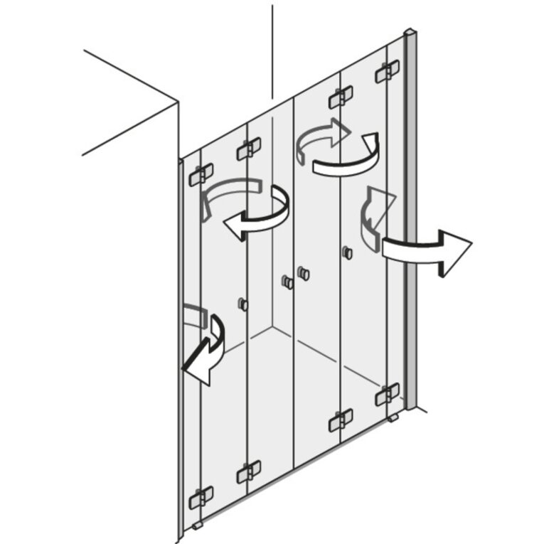 Durch das Doppel-Scharnier kann die Tür um 180° nach außen geöffnet werden.