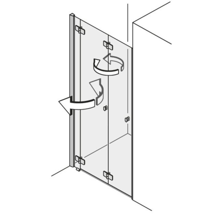 Ein Hebe-Senk Mechanismus im Pendeltür-Scharnier hebt die Duschtür beim Öffnen etwas auf und senkt sie wieder beim Schließen. Dadurcg streift die Tür beim Bewegen nicht am Boden und ist dennoch im geschlossenen Zustand möglichst dicht.