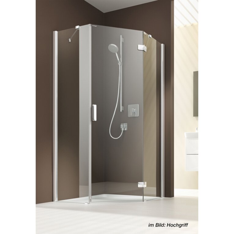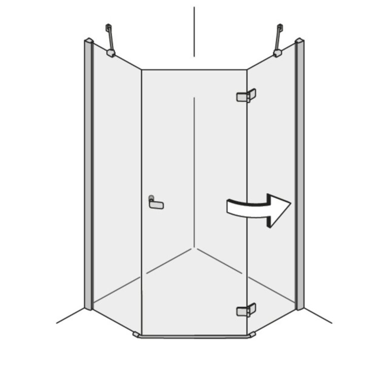 Ein Hebe-Senk Mechanismus im Flügelltür-Scharnier hebt die Duschtür beim Öffnen etwas auf und senkt sie wieder beim Schließen. Dadurcg streift die Tür beim Bewegen nicht am Boden und ist dennoch im geschlossenen Zustand möglichst dicht.