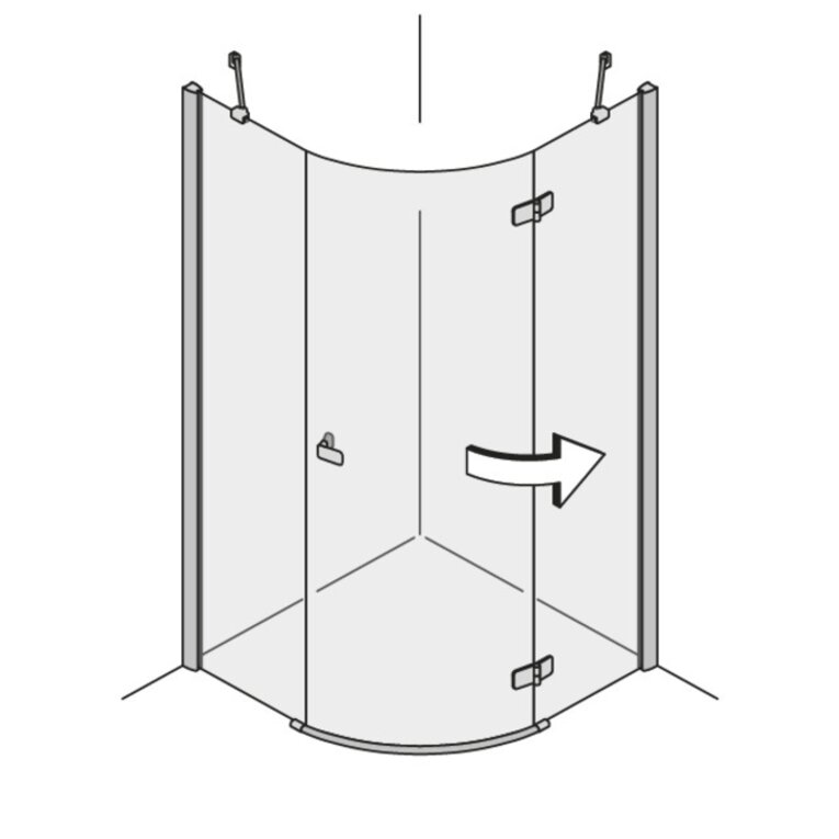 Ein Hebe-Senk Mechanismus im Flügelltür-Scharnier hebt die Duschtür beim Öffnen etwas auf und senkt sie wieder beim Schließen. Dadurcg streift die Tür beim Bewegen nicht am Boden und ist dennoch im geschlossenen Zustand möglichst dicht.
