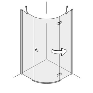 1/4-round shower single winged door right 90x80Ix200cm door on wide fixed part