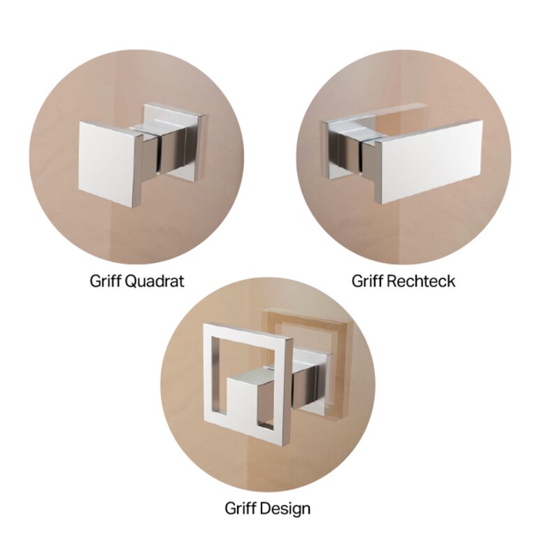 An der Tür-Innenseite kommt immer ein einfach zu reinigender Knauf zum Einsatz, an der Tür-Außenseite können Sie zwischen 4 Griffarten wählen.