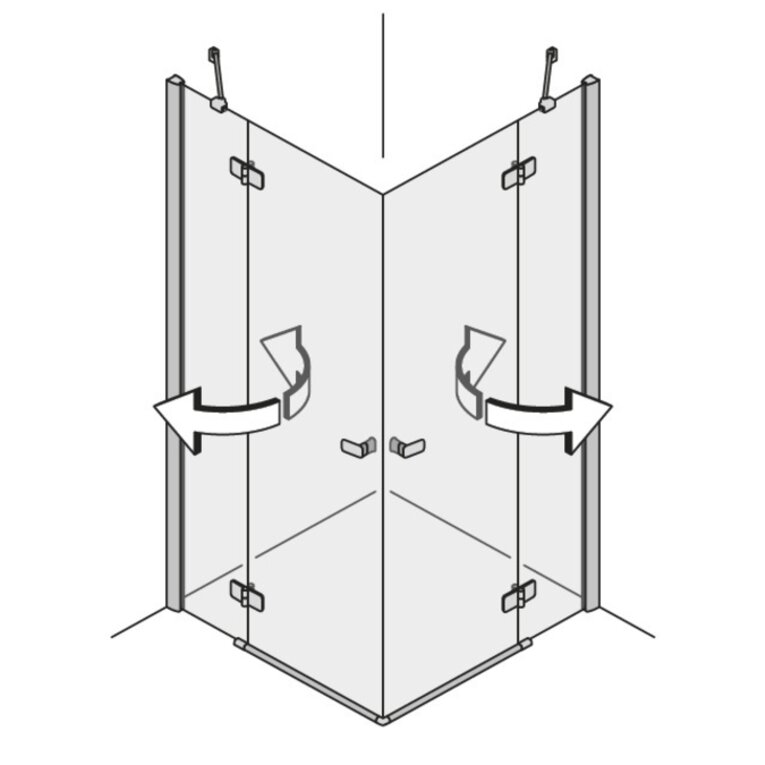 Das 360° TWIN-Scharnier ist eine außergewöhnliche Erfindung und macht Lösungen möglich, die mit einem herkömmlichen Pendelscharnier nicht realisierbar sind. Das patentierte Scharnier ermöglicht das Öffnen der Tür um 180 Grad nach innen und außen, bis es am Fixteilglas anliegt. Auf diese Weise bietet es mehr Bewegungsspielraum im Bad, die Duschtür steht Ihnen nie mehr im Weg. Das ist konsequente Barrierefreiheit auch im kleinen Bad!