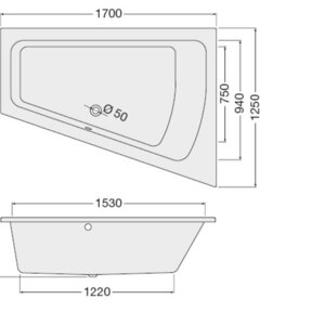 space-saving bathtub Corinna 1700x1250x450mm right