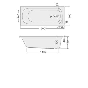 rectangular bathtub Laura 1600x700x420mm