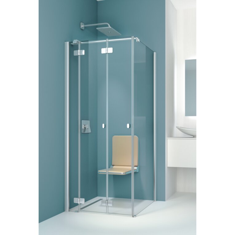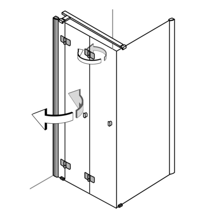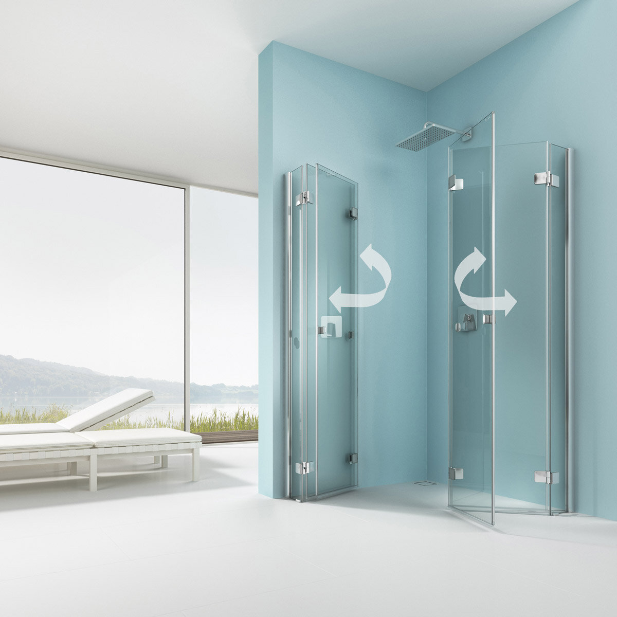 Das 360° TWIN-Scharnier ist eine außergewöhnliche Erfindung und macht Lösungen möglich, die mit einem herkömmlichen Pendelscharnier nicht realisierbar sind. Das patentierte Scharnier ermöglicht das Öffnen der Tür um 180 Grad nach innen und außen, bis es am Fixteilglas anliegt. Auf diese Weise bietet es mehr Bewegungsspielraum im Bad, die Duschtür steht Ihnen nie mehr im Weg. Das ist konsequente Barrierefreiheit auch im kleinen Bad!