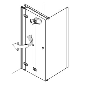 Durch das Doppel-Scharnier kann die Tür um 180° nach außen geöffnet werden.