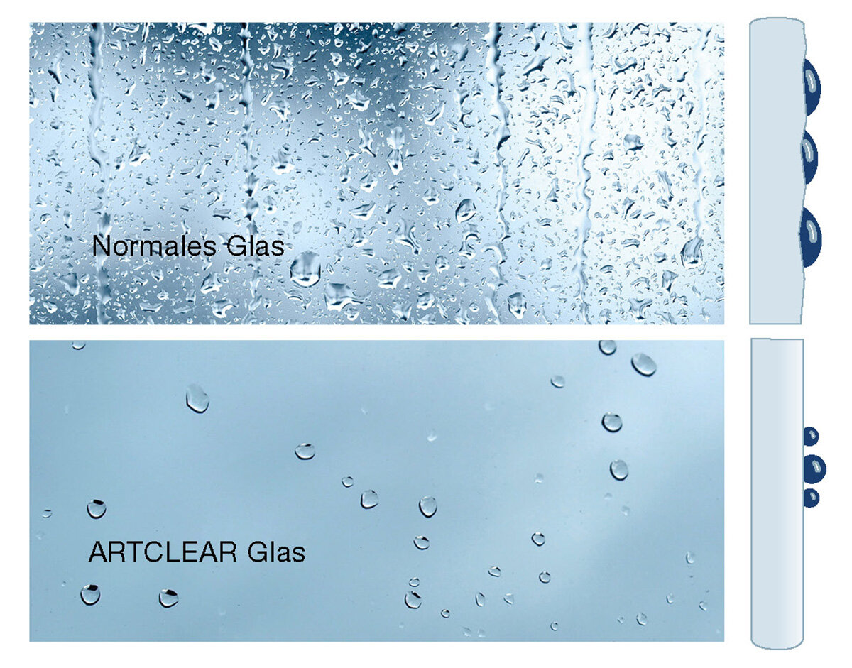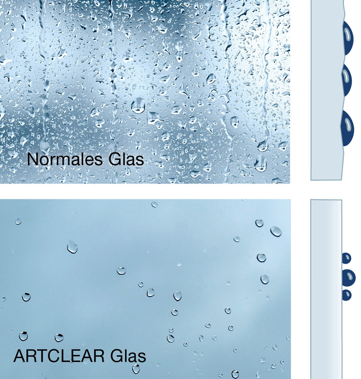Optional können Artweger 360 Duschgläser mit ARTCLEAR Glas veredelt werden. Dadurch werden die Glasoberflächen besonders glatt, Schmutz- und Kalkreste finden kaum Halt. Dank der UV Aushärtung der Oberfläche hält dieser Effekt ein Duschenleben lang.