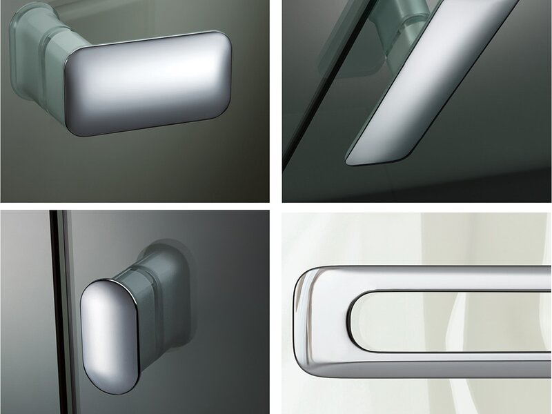 An der Tür-Innenseite kommt immer ein einfach zu reinigender Knauf zum Einsatz, an der Tür-Außenseite können Sie zwischen 4 Griffarten wählen.