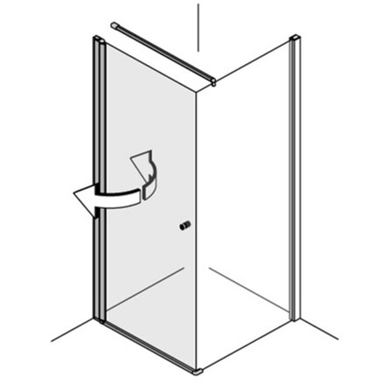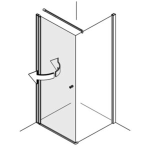 Modelle mit der Tür an einem Glas-Fixteil erlauben die Öffnung der Türe um 180° nach innen und 180° nach außen. Das ist einzigartig am Markt!  Modelle mit der Tür direkt an der Wand haben einen Öffnungswinkel von 90° nach innen und außen.