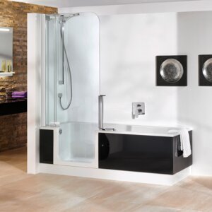 Sie ist einerseits eine vollwertige Dusche, in die Sie bequem durch die integrierte Duschtür einsteigen können.