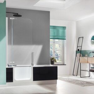 Sie ist einerseits eine vollwertige Dusche, in die Sie bequem durch die integrierte Duschtür einsteigen können.