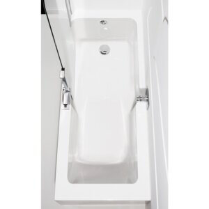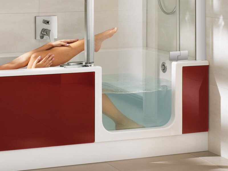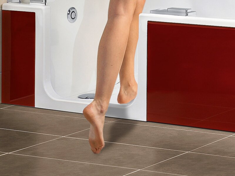 So bequem haben Sie eine Badewanne noch nie erlebt: Einstiegshöhe 18,5 cm, kann (wie abgebildet) bis auf 5,5 cm verringert werden.