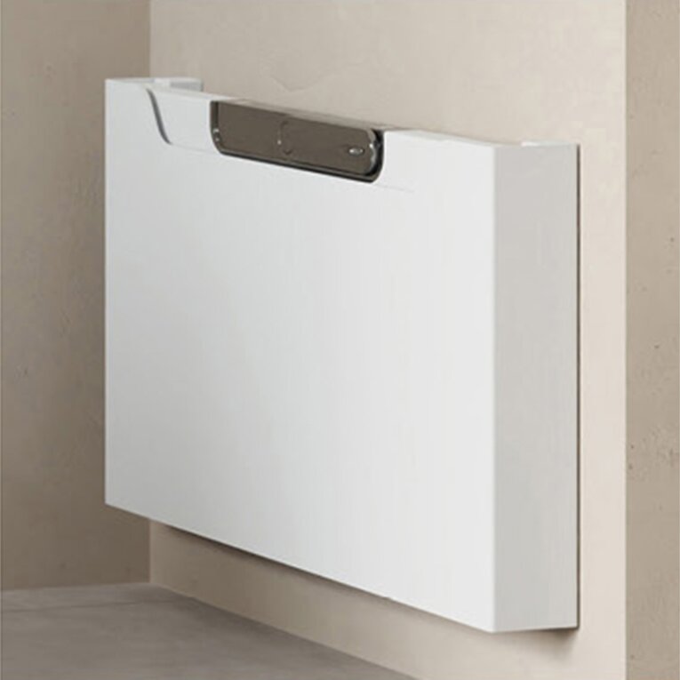 Optional: Stabile und gleichzeitig elegante Aufbewahrungsbox für das Wannenschott der JOICE. Durch die Wandbefestigung hängt das Schott in der Luft wodurch die Schott-Dichtungen optimal geschützt sind. Gleichzeitig istdas Schott jederzeit griffbereit.